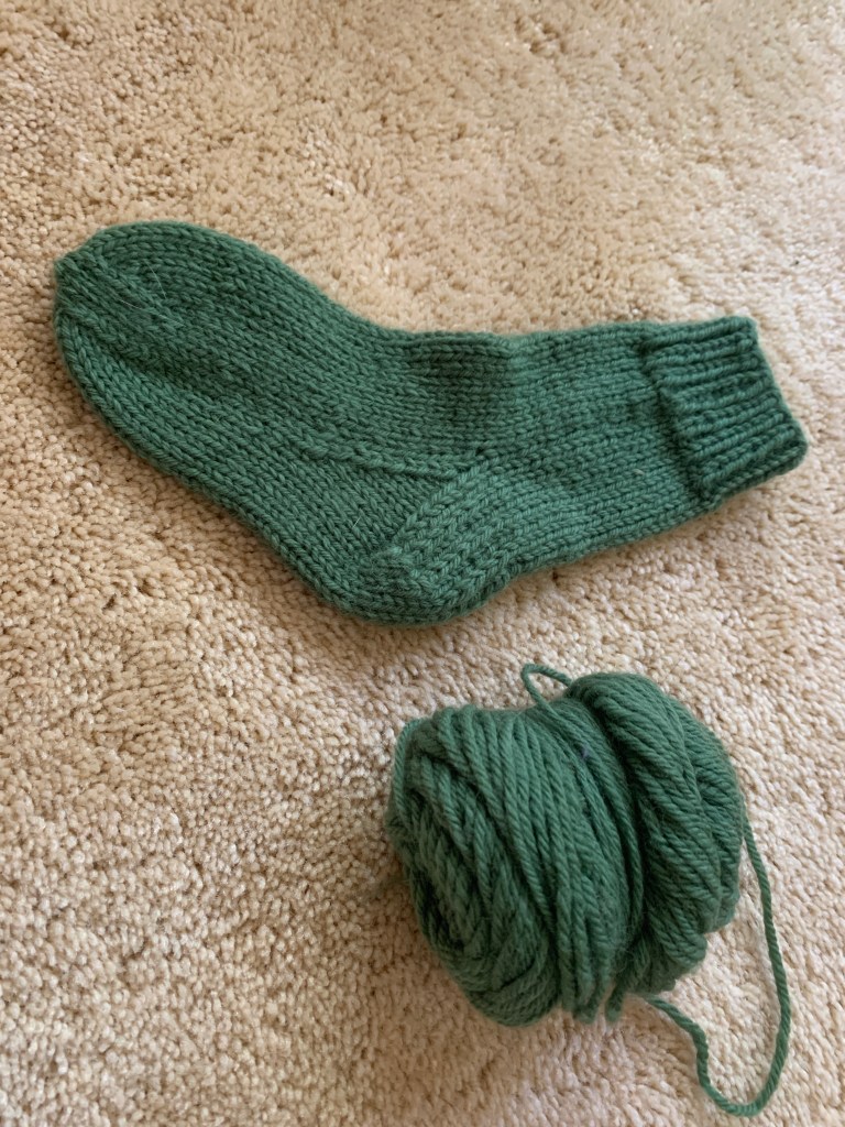Next up I will try to knit a sock that matches this little green one. I have no directions, so I am going to have to “read” the sock. It looks fairly standard.
